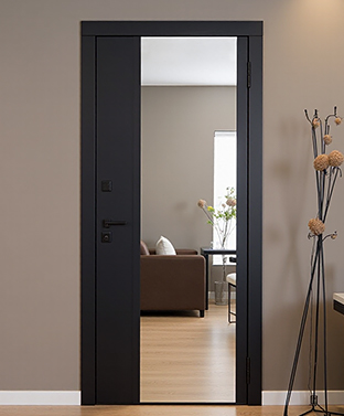 Двери с зеркальными вставками выполняют не только защитную, но и декоративную функцию, визуально расширяя пространство небольших прихожих. Стеклопакеты в дверном полотне добавляют естественного освещения, делая входную зону более светлой и просторной. Ламинированные покрытия устойчивы к царапинам и легко очищаются от загрязнений.