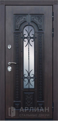 Входная дверь с ковкой и стеклом №414